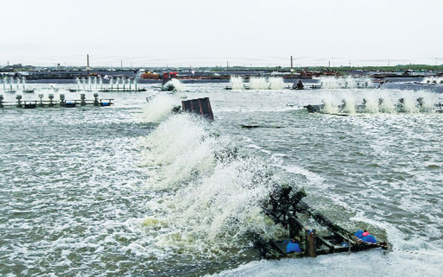 Tất cả các ao nuôi của Trang trại Tân Nam đều được sử dụng chế phẩm vi sinh tự phân lập và nuôi cấy Ảnh: Xuân Trường