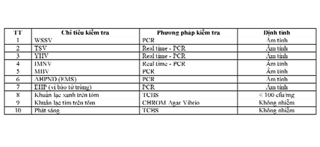 - Kiểm tra các tiêu chí tôm giống(30/07/2021)