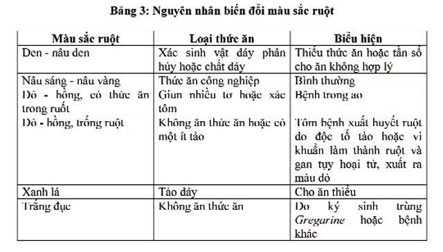 Nếu đã cho ăn > 80% tổng lượng thức ăn khuyến cáo và ít nhất 3 lần/ngày mà ruột < 1,6 là tôm bệnh.