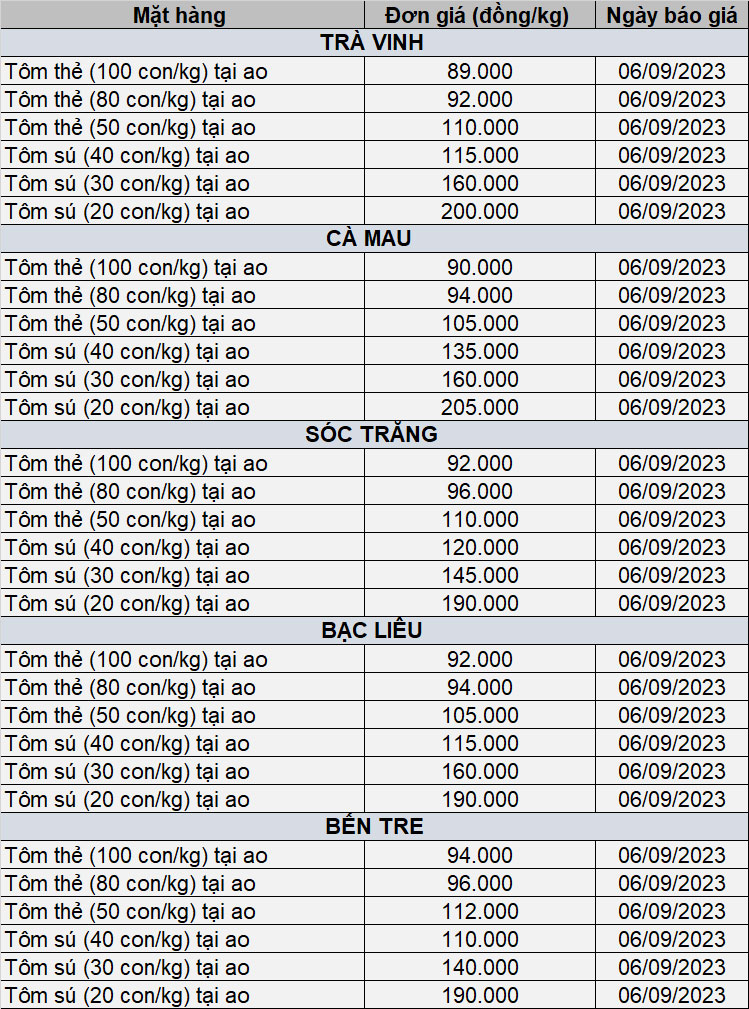 - Giá tôm nguyên liệu tuần 14/8 - 18/8/2023(15/09/2023)