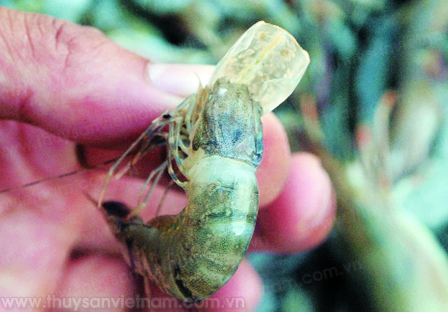 Tôm bị bệnh đốm trắng gây thiệt hại lớn cho người nuôi – Ảnh: Máy Cày