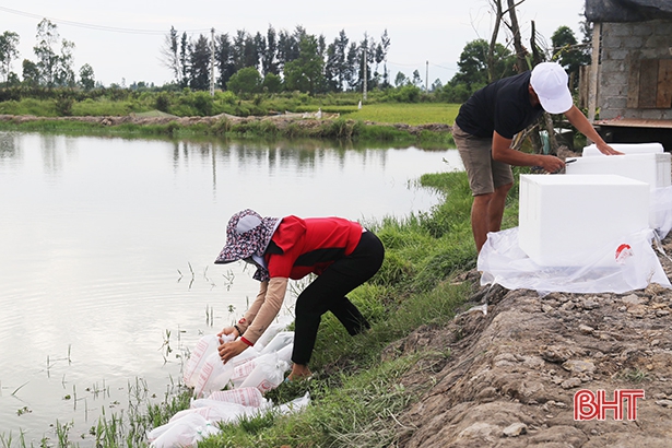 Đợt thả nuôi thứ hai có 11 hộ nuôi trồng thủy sản tại thôn Sông Tiến, xã Thạch Sơn tham gia thả nuôi hơn 75 vạn tôm giống càng xanh.