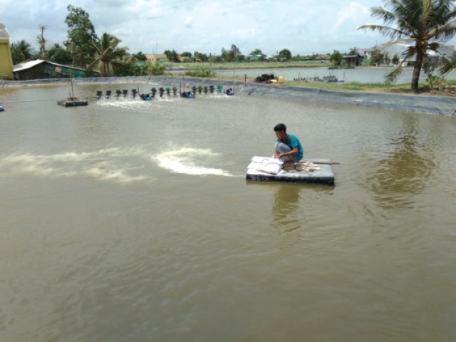 – Dùng quạt gió, tăng ôxy để tôm có thể phát triển;