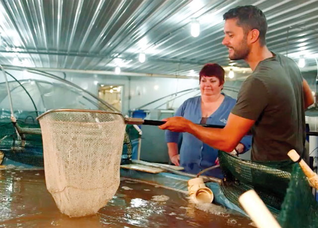 Trang trại nuôi tôm RDM Aquaculture của cặp vợ chồng người Ấn cách biển khoảng hơn 600 dặm. Đây là trang trại nuôi tôm nước mặn trong nhà theo kiểu hầm ngầm.