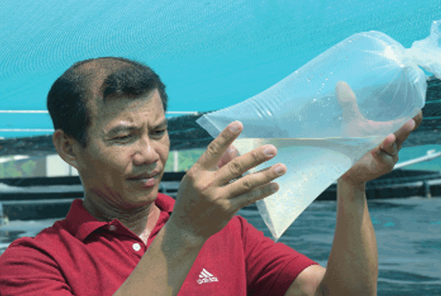 Anh Long Văn Nghĩa kiểm tra chất lượng tôm giống