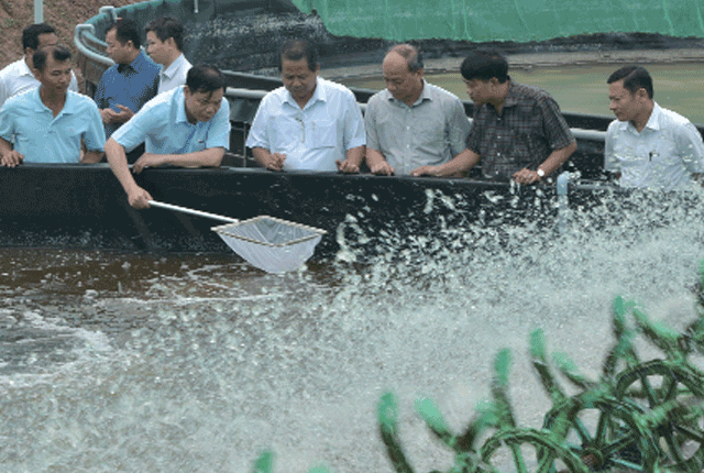 Bộ trưởng Bộ NN&PTNT Nguyễn Xuân Cường đã đến thăm và đánh giá cao mô hình nuôi tôm bể tròn của anh Nghĩa