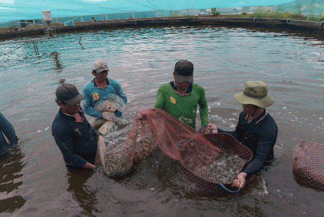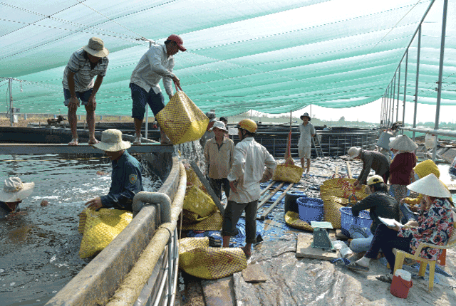 Thương lái đến tận nơi thu mua tôm