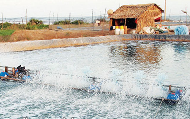Sử dụng sục khí để duy trì lượng ôxy trong ao nuôi Ảnh: Hoàng Trong